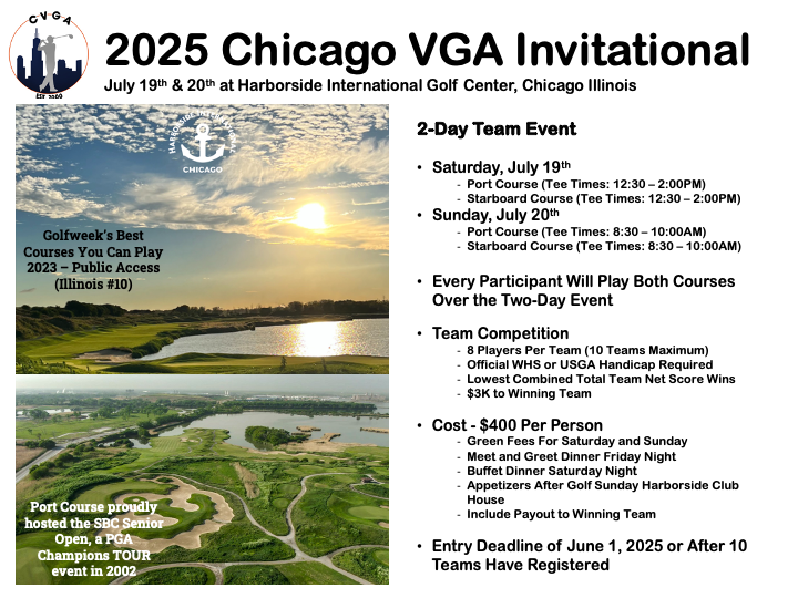 October 12th – Register for October Tournament at Klein Creek Golf Club on the Chicago VGA app. Green fee is $65/riding.