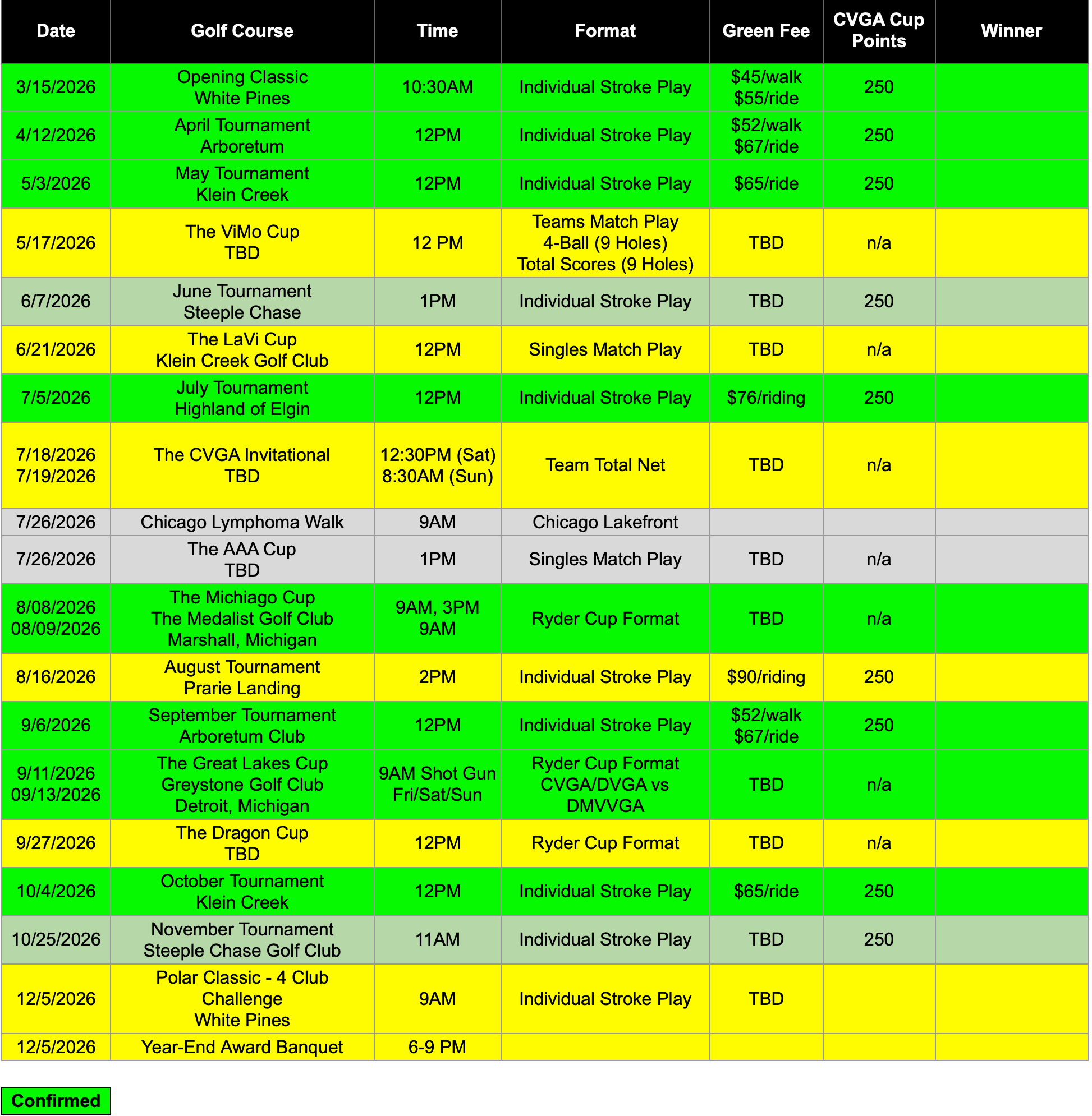 Register for the season opening, March Tournament at White Pines Golf Club on the Chicago VGA app. Green fee is $45/walk and $55/riding.