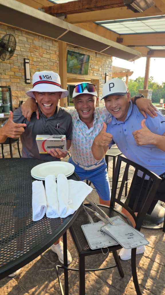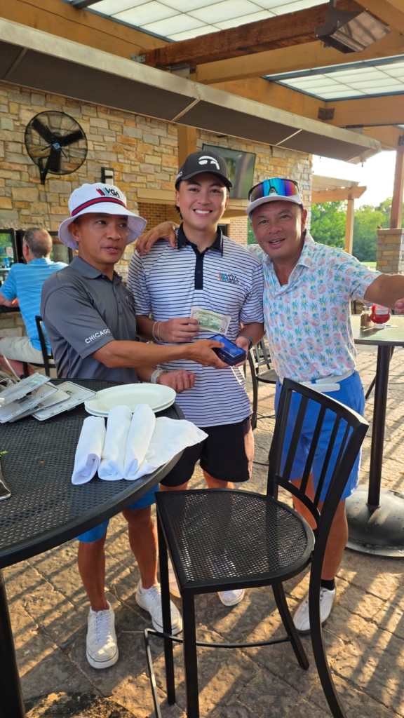 IIt was quite the challenge for our players in the August tournament at Village Links in Glenn Elyn, IL. The course took a lot of rain the night before, so it was walking only, and the course was set up at the tip due to the Glenn Elyn Open tournament in the morning. Even so, Lam Vo took on the challenge and shot a net 71.6 to win the tournament. Nam Le gave a spirited challenge but came up just short with a net of 73 to take the B-Flight, and Oobo Ochirjav won the A-Flight with a net of 73.6. Well played, guys. The Par-3 closest to the pin winners were Mark Nguyen, Baki Batbold, Oobo, and Hoang Le. Congrats to all the winners! Full results can be viewed here